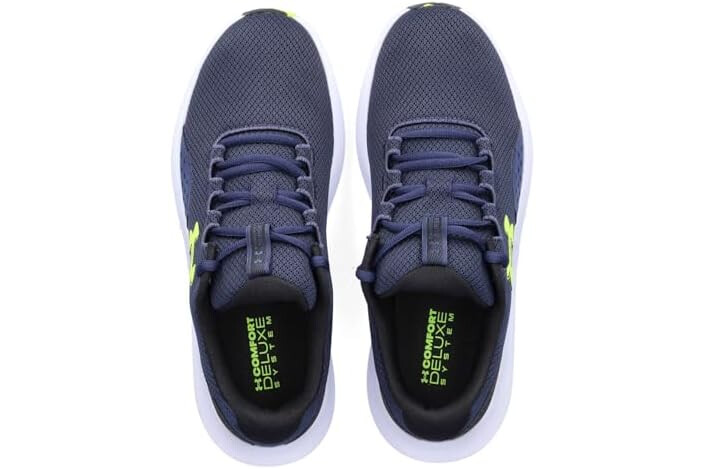 Under Armour Men's Charged Surge 4 Sneaker, (404) Washed Navy/Black/High Vis Yellow, 7.5 UK