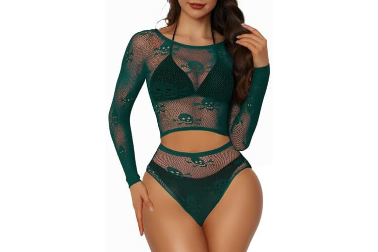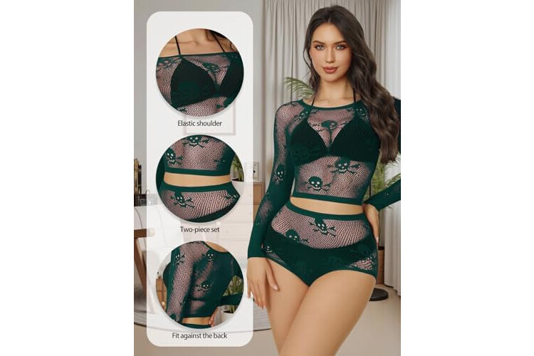 Buitifo Womens Lingerie Set Fishnet Babydoll Bodysuit Sexy Nightwear Skull Halloween Costume