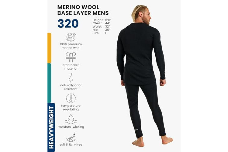 Merino.tech Merino Wool Base Layer Men Set - Merino Thermal Underwear Mens Top and Bottom Lightweight, Midweight, Heavyweight