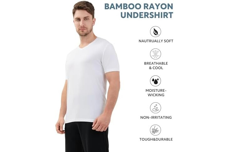 DAVID ARCHY Men's Cooling Undershirt Rayon Made from Bamboo T Shirts Moisture-Wicking Heather Tees for Men, 3-Pack