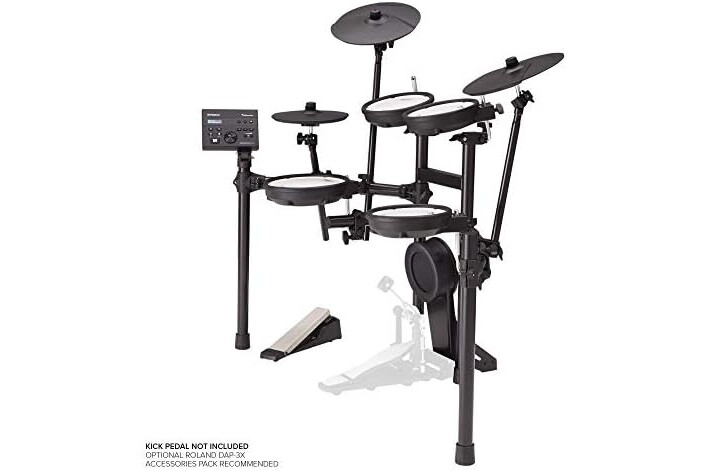 Roland’s original ultra-quiet, double-ply mesh heads feature across the snare and tom pads, while large crash and ride pads and a dedicated kick pad with realistic, satisfying pedal feel round out the kit.
