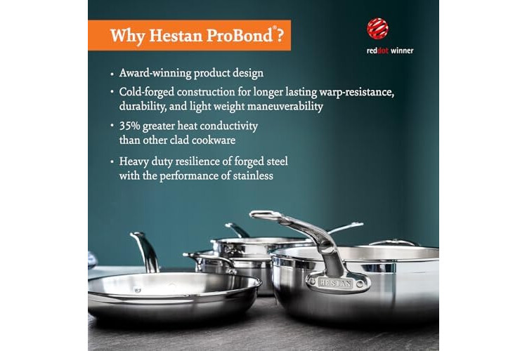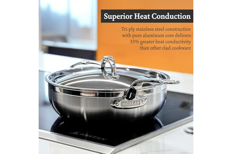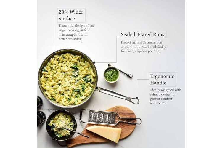 Triple bonded clad stainless steel with exclusive ProCoreTM aluminum delivers 35% greater heat conductivity than other aluminum-clad cookware for quick and even heating