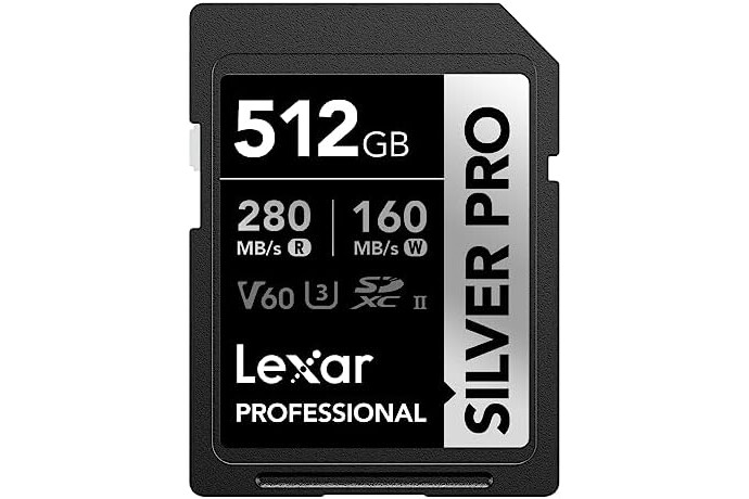 Lexar SILVER PRO SD Card 512GB, UHS-II SD Memory Card, V60, U3, C10, Up to 280MB/s Read, 160MB/s Write, SDXC Card for DSLR/Camera/Professional Photographer/Videographer/Enthusiast (LSDSIPR512G-BNNAA)