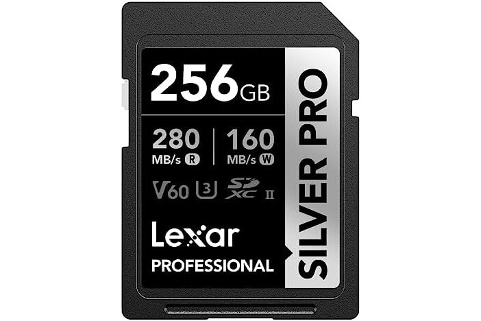 Lexar SILVER PRO SD Card 256GB, UHS-II SD Memory Card, V60, U3, C10, Up to 280MB/s Read, 160MB/s Write, SDXC Card for DSLR/Camera/Professional Photographer/Videographer/Enthusiast (LSDSIPR256G-BNNAA)