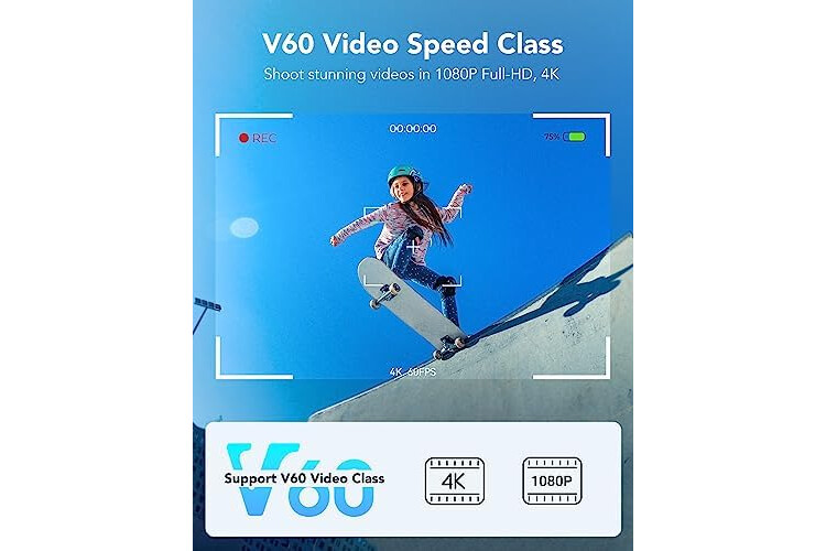 V60 Primed to Perform: Capture stunning 1080p full-HD, 3D and 4K videos easily. Lexar SILVER PRO V60 SD memory cards boast high-capacity storage with unmatched performance. Capture extended lengths of 4K video without interruption. Enjoy uninterrupted recording with no delay