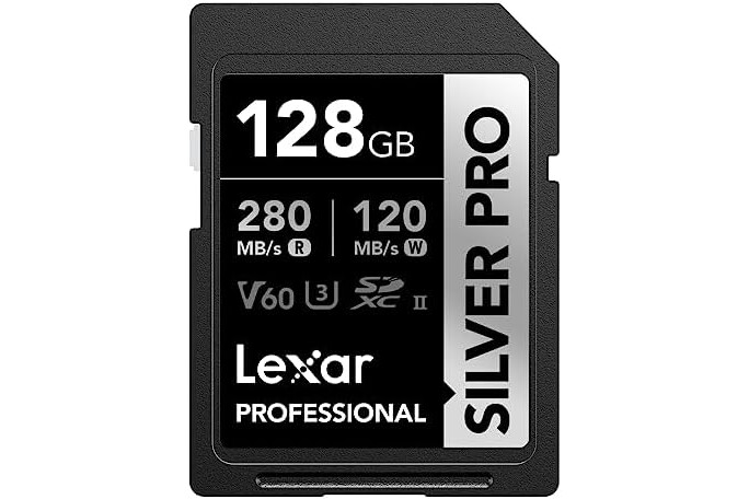 Lexar SILVER PRO SD Card 128GB, UHS-II SD Memory Card, V60, U3, C10, Up to 280MB/s Read, 120MB/s Write, SDXC Card for DSLR/Camera/Professional Photographer/Videographer/Enthusiast (LSDSIPR128G-BNNAA)