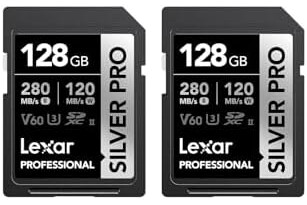 Lexar SILVER PRO SD Card 2x128GB, UHS-II SD Memory Card, V60, U3, C10, Up to 280MB/s Read/120MB/s Write, SDXC Card for DSLR/Camera/Professional Photographer/Videographer/Enthusiast(LSDSIPR128G-B2NAA)