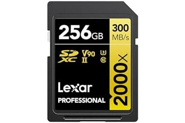 Lexar Professional 2000x SD Card 256GB, SDXC UHS-II Memory Card, Up to 300MB/s Read, 260MB/s Write, Class 10, U3, V90 SDXC Card for DSLR, Full-HD Cinema-Quality 8K Video Cameras (LSD2000256G-BNNNG)