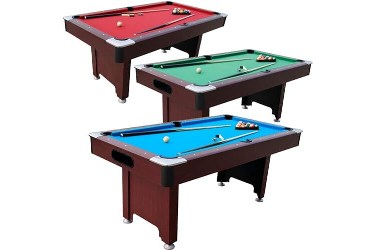 The table has adjustable feet for easy leveling on uneven surfaces and detachable legs for easy storage where space is at a premium.We are confident that this pool table cannot be beaten on strength, quality or value for money and expect that all of our customers will be extremely satisfied with their purchase.