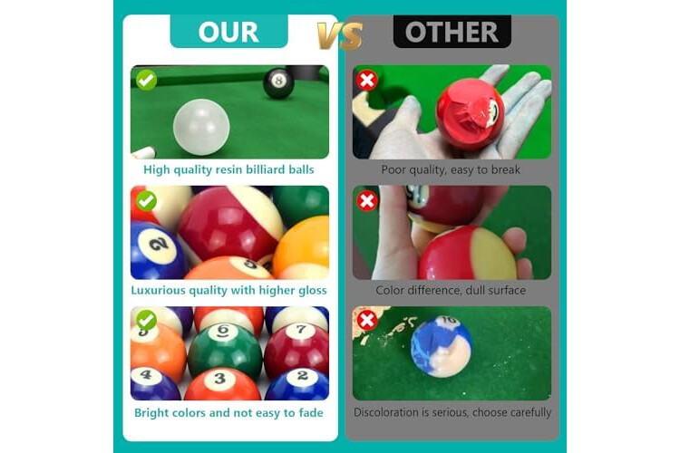 Eyuepu Billiard Balls Set 2-1/4" Regulation Size Pool Table Balls for Replacement (16 Resin Balls)