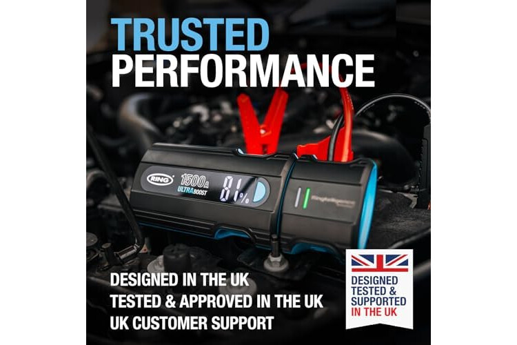 RING ULTRABOOST 1500A Car Battery Jump Starter - Safely Starts Up to 6 Litre Petrol and 3 Litre Diesel Engines - Battery Booster with Jump Leads, Portable USB Powerbank and LED Torch
