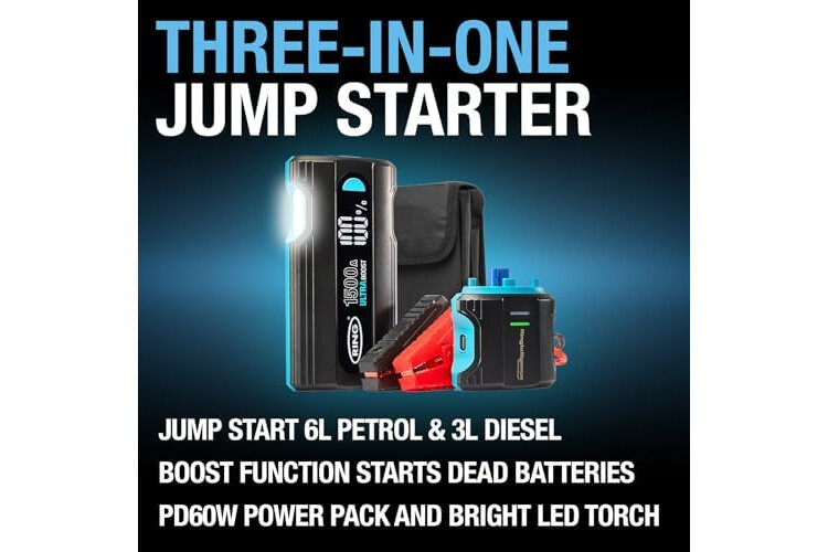 WHAT SIZE BOOSTER DO I NEED? There are three Ultra Boost choices. The 500 Amp jump starter safely starts up to 3L petrol and 1.5L diesel engines. The 1,000 Amp jump starter starts up to 5L petrol and 2L diesel engines. The 1,500 Amp jump is suitable for up to 6L petrol and 3L diesel cars. All are safe for petrol, diesel and hybrid cars and they all work with cars using stop start technology – our supplied easy-reach cables and large clamps make the charger ideal even for large car and van batteries.