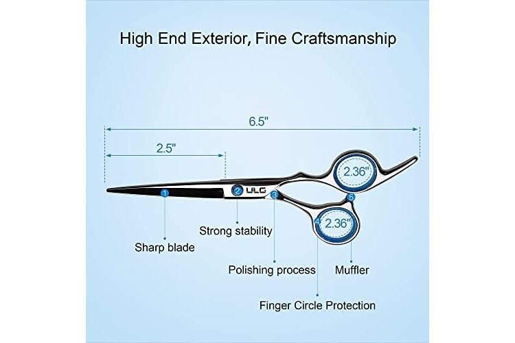 Hair Cutting Scissors Shears, Professional Barber ULG 6.5 inch Hairdressing Scissor Salon Razor Edge Hair Cutting Shear Japanese Stainless Steel with Detachable Finger Inserts