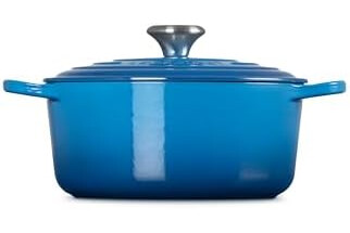 Contents: 1 x Le Creuset Signature Cast Iron Round Casserole, 1 x Care and Use Booklet, Dimensions: 32.5 x 25.2 x 16.6 cm, Weight: 4.31 kg, Capacity: 4.2 Litre, Colour: Marseille Blue, 211772420