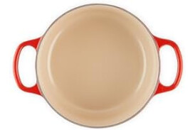 Easy food release interior enamel, for quick simmering or slow cooking on medium-low heat, Heats evenly with lasting heat retention