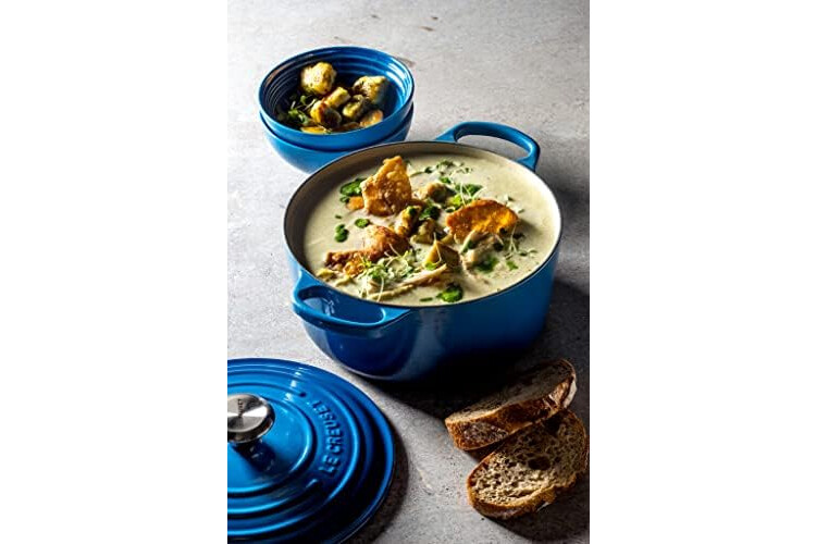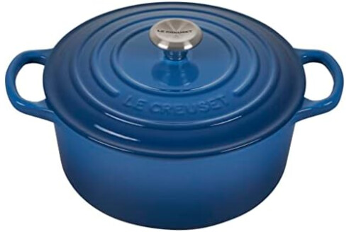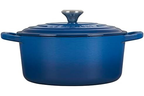Contents: 1 x Le Creuset Signature Cast Iron Round Casserole, 1 x Care & Use Booklet, Dimensions: 30 x 23.3 x 15.2 cm, Weight: 3.93 kg, Capacity: 3.3 Litre, Colour: Marseille Blue, 211772220