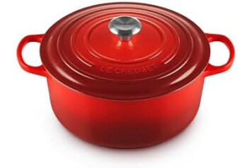 Contents: 1 x Le Creuset Signature Cast Iron Round Casserole, 1 x Care and Use Booklet, Dimensions: 32.5 x 25.2 x 16.6 cm, Weight: 4.31 kg, Capacity: 4.2 Litre, Colour: Cerise, 21177280602430