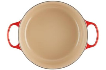 Easy food release interior enamel, for quick simmering or slow cooking on medium-low heat, Heats evenly with lasting heat retention
