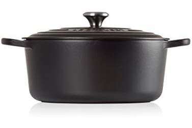 Contents: 1x Le Creuset Signature Cast Iron Round Casserole, 1x Care and Use Booklet, Dimensions: 40.2x31.8x19.1cm, Weight: 7.17kg, Capacity: 8.4 Litre, Colour: Matte Black, 21177300000430