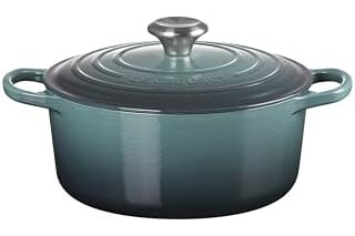 Le Creuset Signature 21177223602430 Enamelled Cast Iron Round Casserole Dish With Lid, 22 cm, 3.3 Litre, Ocean
