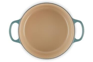 Easy food release interior enamel, for quick simmering or slow cooking on medium-low heat, heats evenly with lasting heat retention