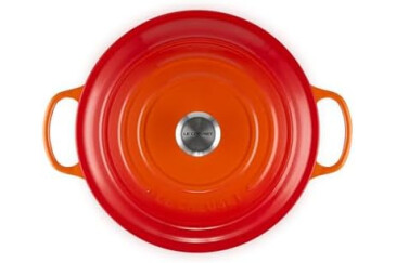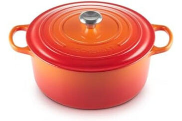 Round enamelled cast iron dish, Tight-fitting lid, Fuss-free one-pot cooking, Serves 8-10 people, Made in France