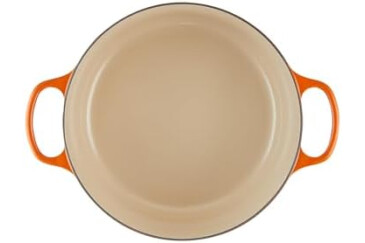 Easy food release interior enamel, For quick simmering or slow cooking on medium-low heat, Heats evenly with lasting heat retention