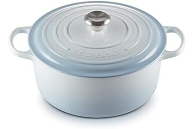 Contents: 1 x Le Creuset Signature Cast Iron Round Casserole, 1 x Care and Use Booklet, Dimensions: 35.3 x 27.4 x 17.2 cm, Weight: 5.14 kg, Capacity: 5.3 Litre, Colour: Coastal Blue, 21177284202430