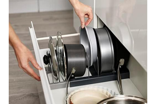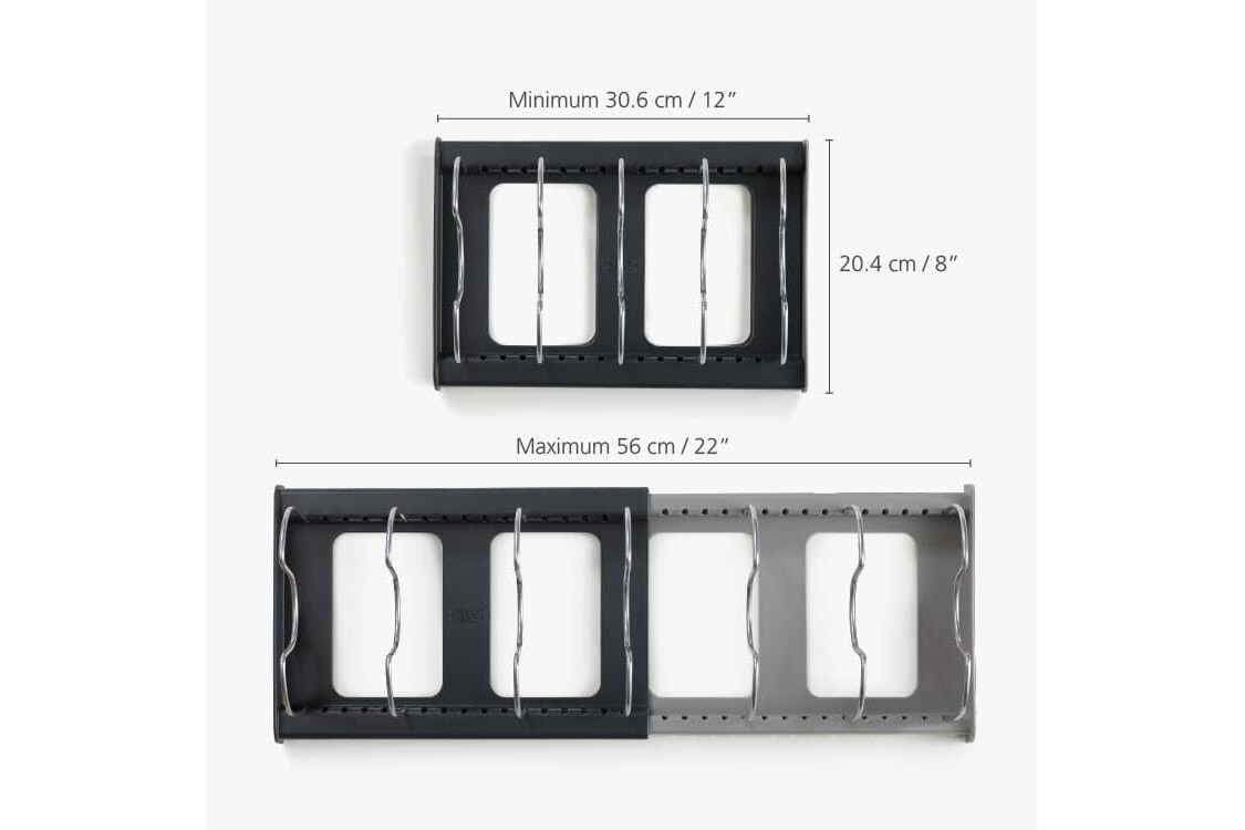 Joseph Joseph DrawerStore Expanding Cookware Organiser, Space saving storage for pan lids, baking trays - Grey, 24