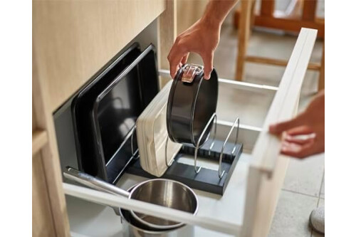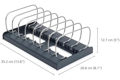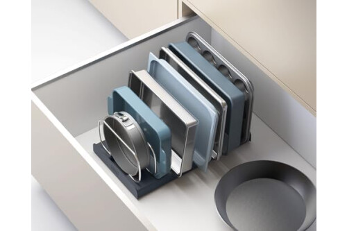 Joseph Joseph Drawerstore Cookware Organiser, Baking Tray Rack, Space Saving Storage For Pans, Lids, Chopping Boards, Anthracite, 20.6x35.3x12.7cm