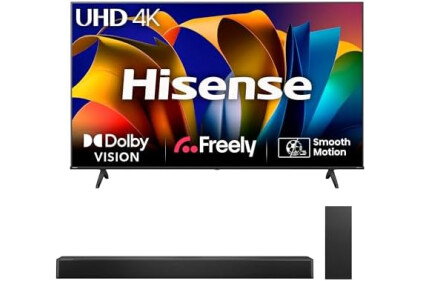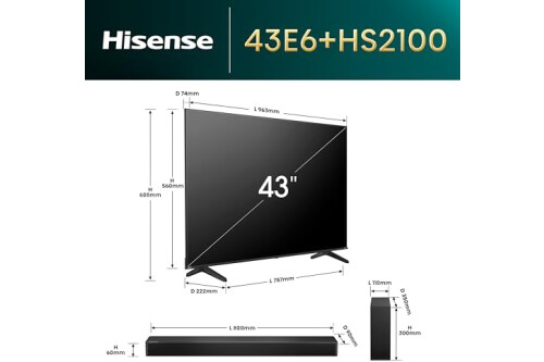 Hisense TV & Soundbar Bundle: 43E6NTUK TV with 4K Direct Lit, Quad Core 4K Processor Plus the HS2100 Soundbar with 240W Power, Surging Direct Sound