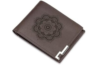Mandala Pattern Wallet Vegan Leather Black Brown Grey Spiritual Leather Wallet Gift for Art Enthusiasts (Brown)