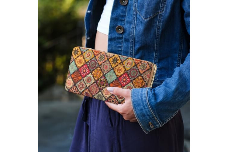 ♥️Leather-free wallet for women: feels soft and is made of natural cork. A stylish vintage style wallet where you can see and feel the colourful cork fabric.