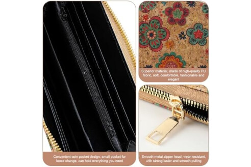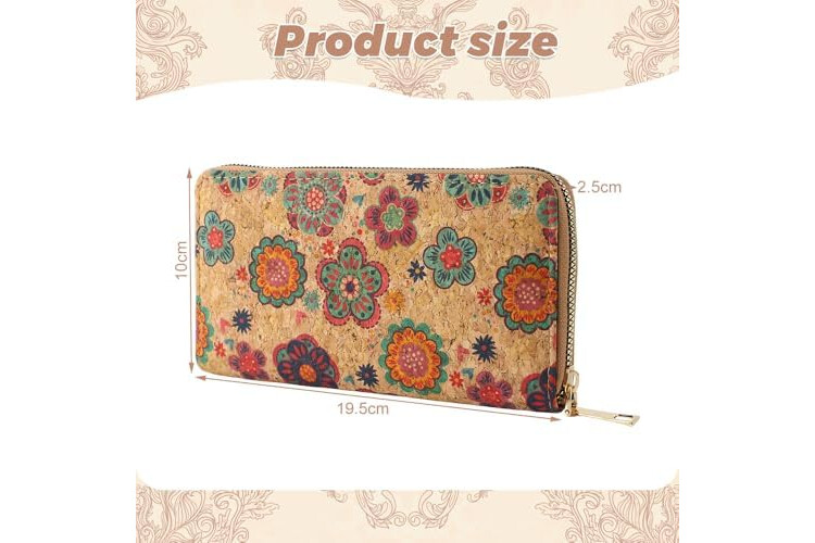 ♥️Multilayer Cork Wallet: 8 card slots, 1 zipper coin pocket, 2 mini receipt pockets, 3 full-length compartments for mobile phones, notes and coins.