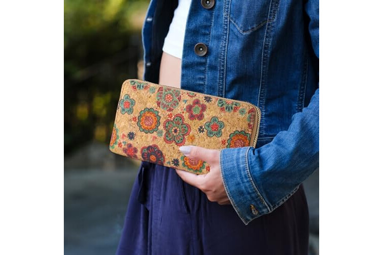 ♥️Leather-free wallet for women: feels soft and is made of natural cork. A stylish vintage style wallet where you can see and feel the colourful cork fabric.