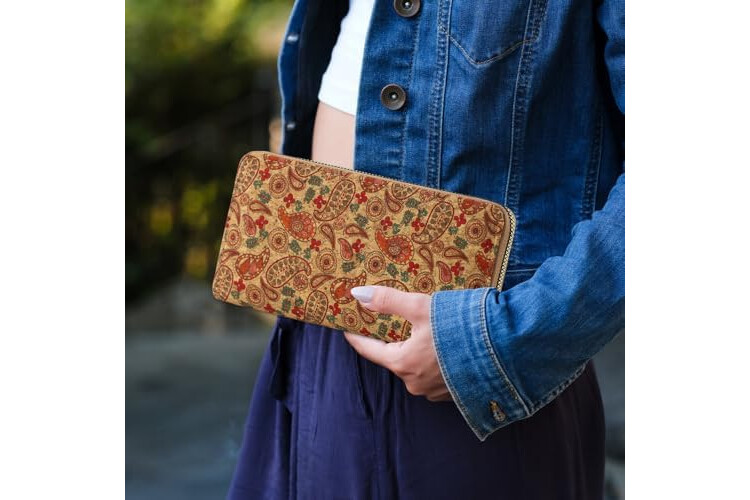 ♥️Leather-free wallet for women: feels soft and is made of natural cork. A stylish vintage style wallet where you can see and feel the colourful cork fabric.
