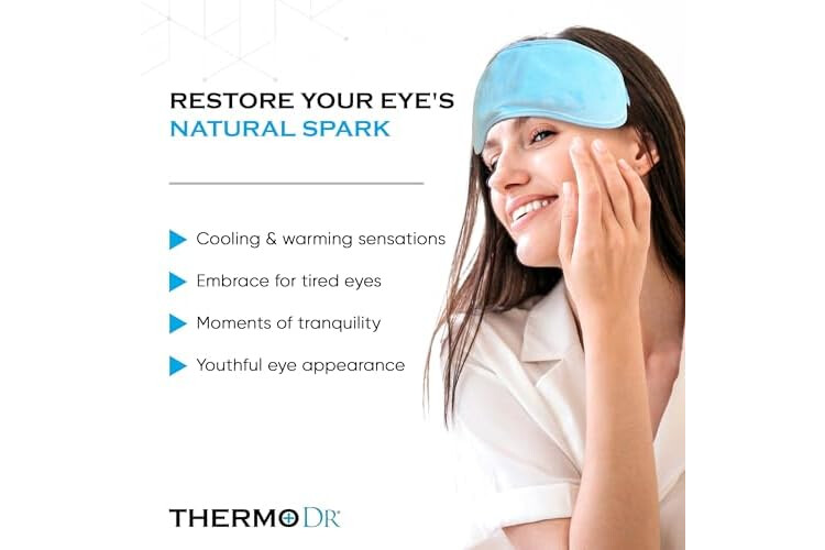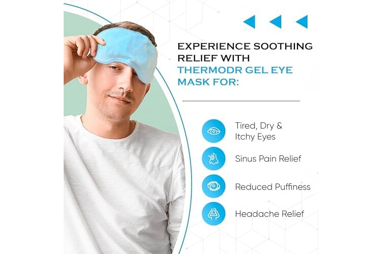 Cooling Gel Eye Mask for Puffy Eyes, Dry Eyes, Headache & Migraine Relief – Hot & Cold Compress with Plush Side – Reusable Eye Ice Pack for Face, Sleep, Hayfever, Tired Eyes – by ThermoDR