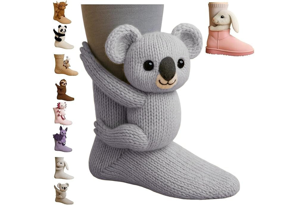 3D Knit Animal Socks, Hand Crocheted Floor Socks for Christmas, Soft Breathable Cotton Novelty Socks, Funny Gifts for Women & Men Comfy