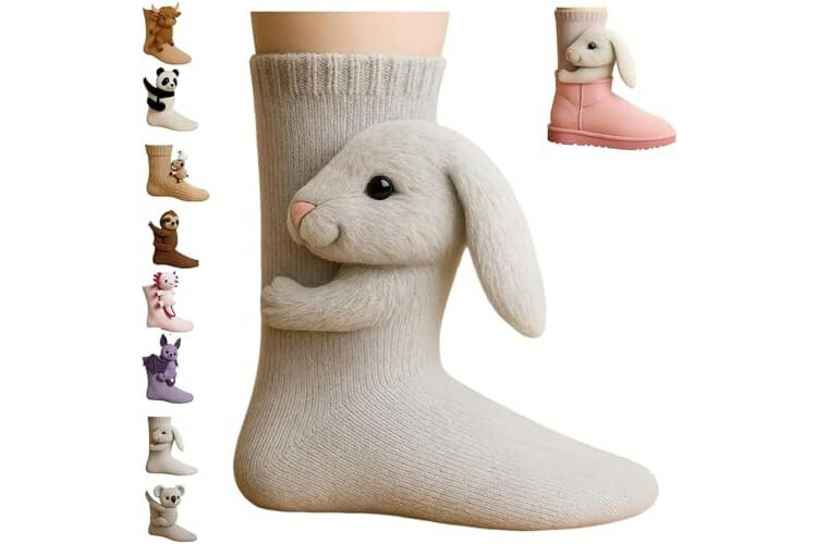 3D Knit Animal Socks, Hand Crocheted Floor Socks for Christmas, Soft Breathable Cotton Novelty Socks, Funny Gifts for Women & Men Comfy