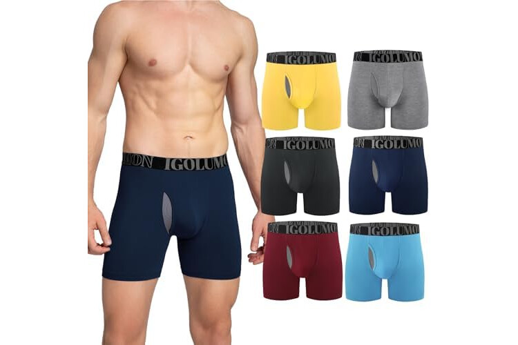 IGOLUMON Bamboo Mens Boxers Shorts Multipack Breathable Men’s Underwear Trunks Briefs with Fly
