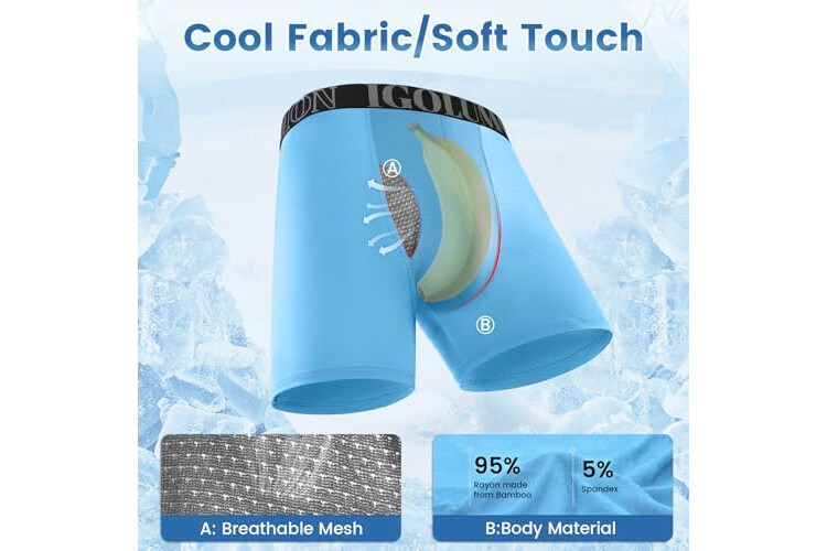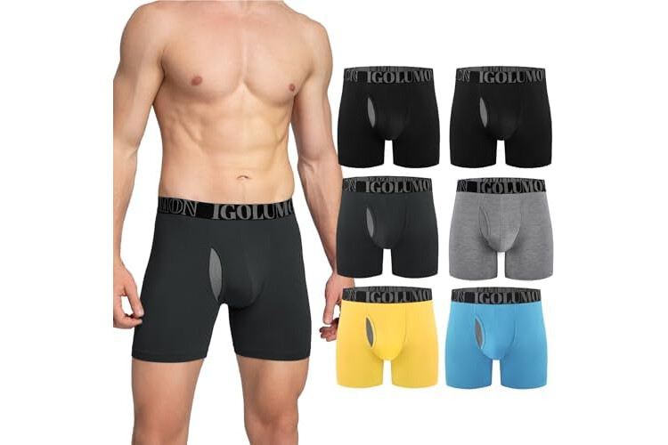 IGOLUMON Bamboo Mens Boxers Shorts Multipack Breathable Men’s Underwear Trunks Briefs with Fly