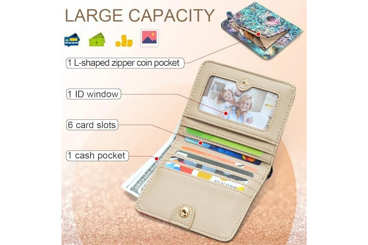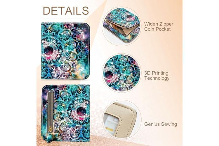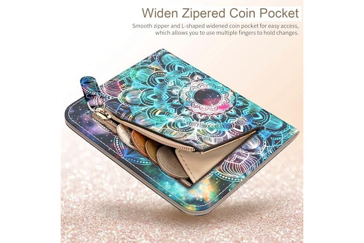 APHISON Purses for Women Small Wallet with Zipper RFID Blocking Slim Vegan Leather Wallet Bifold Card Holder Coin Pocket Ladies Purse with ID Window Mandala