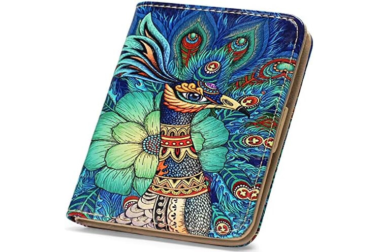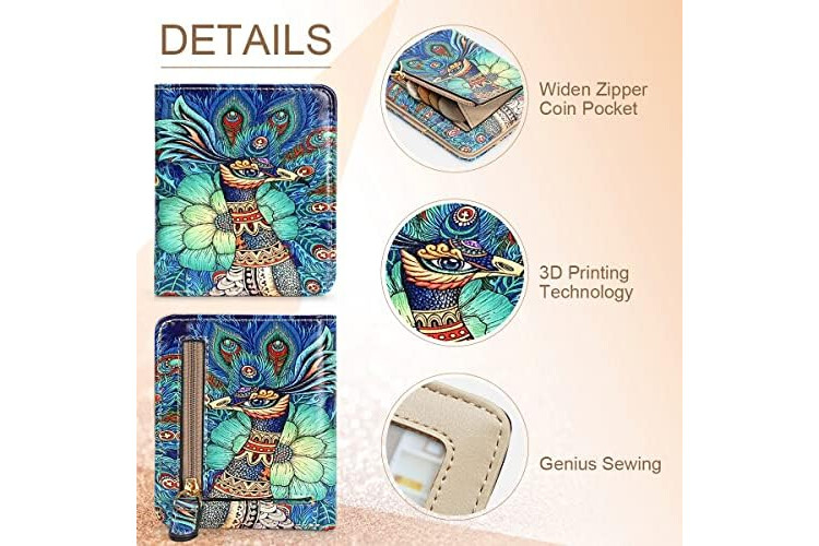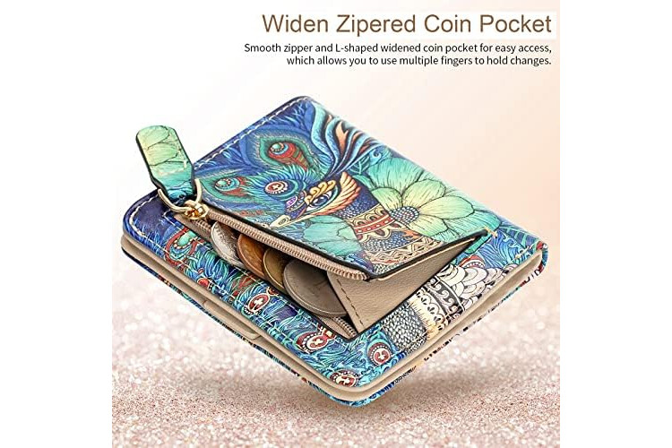APHISON Purses for Women Small Wallet with Zipper RFID Blocking Slim Vegan Leather Wallet Bifold Card Holder Coin Pocket Ladies Purse with ID Window Peacock