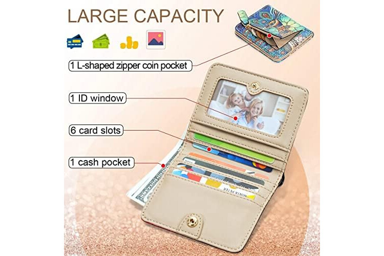 👛【Size of Coin Purse】3.74 X 0.5 X 4.13 inches, only 0.5 inch thick and 70g/0.15lb lightweight. Fit in your pocket or handbag perfectly. With 6 card slots, 1 cash slots, 1 ID windows slots, 1 zippered pocket. This wallet women can meet all your demands.