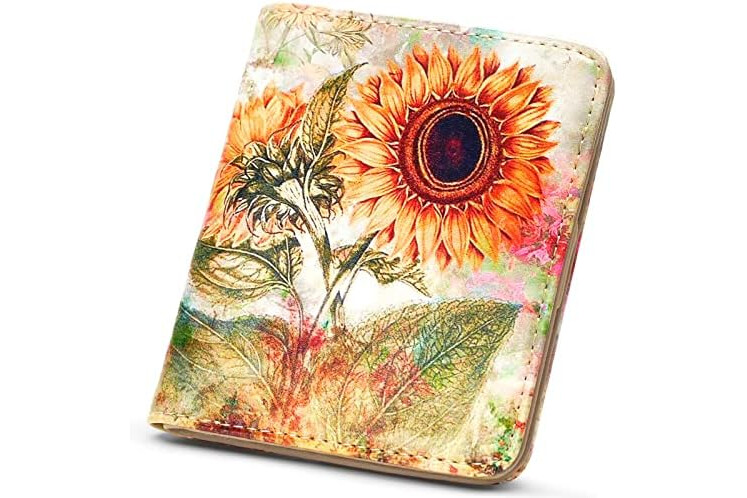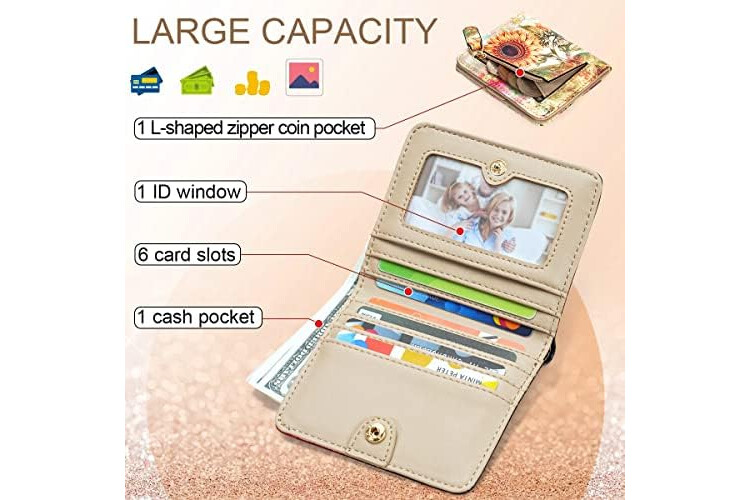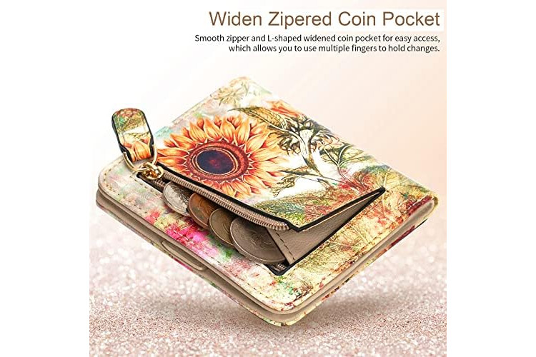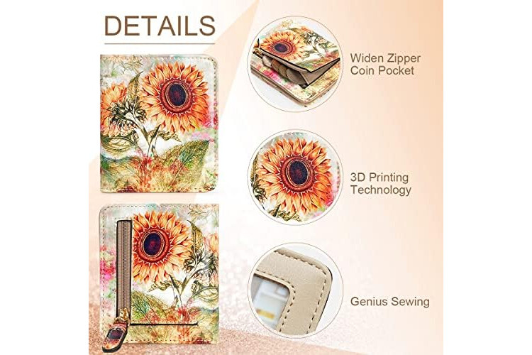 APHISON Purses for Women Small Wallet with Zipper RFID Blocking Slim Vegan Leather Wallet Bifold Card Holder Coin Pocket Ladies Purse with ID Window Sunflower