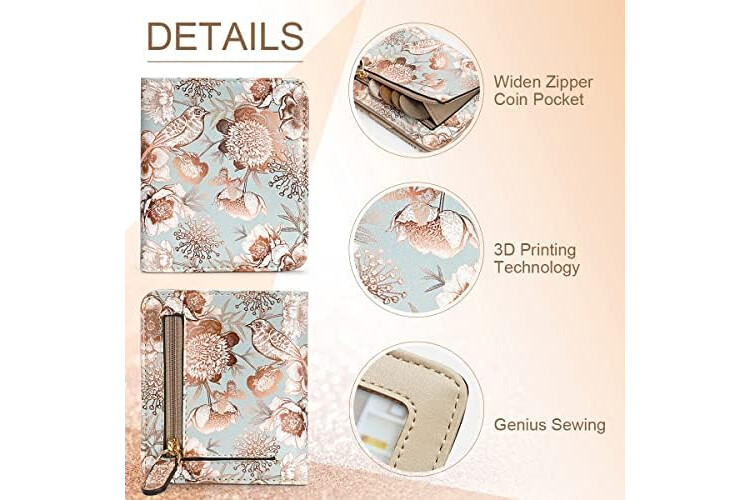 APHISON Purses for Women Small Wallet with Zipper RFID Blocking Slim Vegan Leather Wallet Bifold Card Holder Coin Pocket Ladies Purse with ID Window White-Browed Warbler