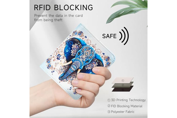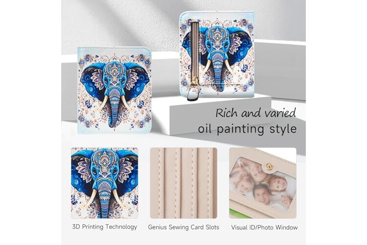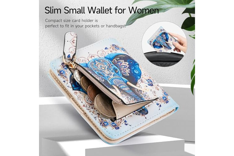 APHISON Purses for Women Small Wallet with Zipper RFID Blocking Slim Vegan Leather Wallet Bifold Card Holder Coin Pocket Ladies Purse with ID Window Blue Elephant