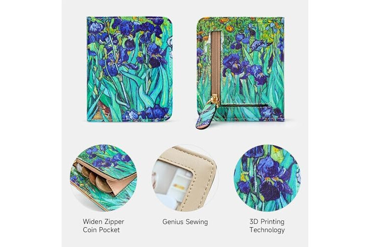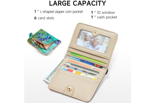 APHISON Purses for Women Small Wallet with Zipper RFID Blocking Slim Vegan Leather Wallet Bifold Card Holder Coin Pocket Ladies Purse with ID Window Iris
