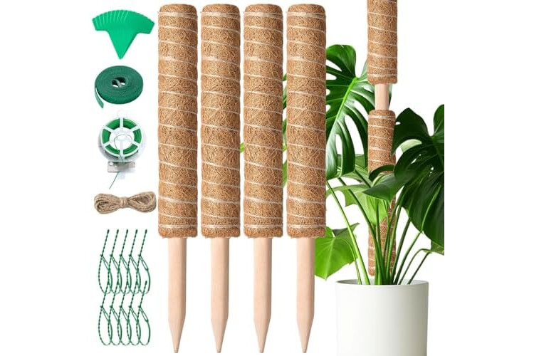 Moss Pole, 4 PCS 41CM/16 Inches Coir Moss Poles for Cheese Plant, Monstera, Climbing Indoor Plants, Plant Supports Totem Pole with Twist Ties Kit for Plants to Grow Upwards
