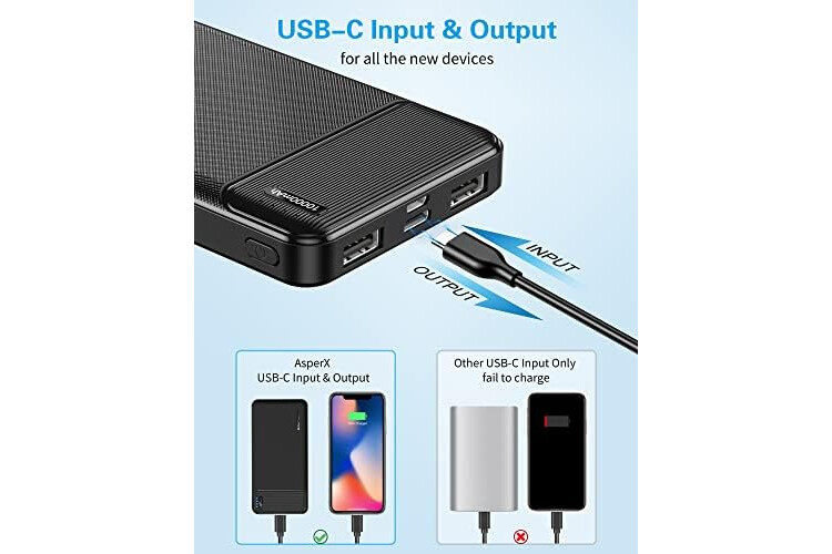 AsperX Power Bank Portable Charger Fast Charging 10000mAh, PowerBank USB C Input and Output, Battery Pack Compatible with iPhone, Samsung, Huawei, iPad, Tablets and More